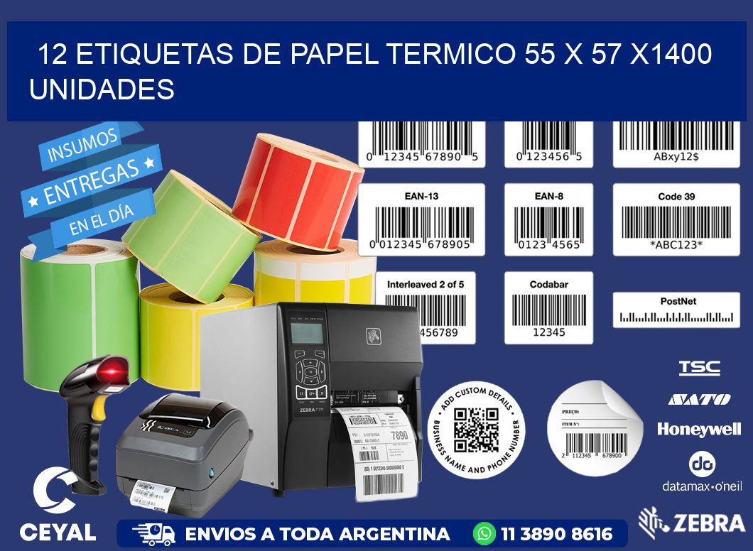 12 ETIQUETAS DE PAPEL TERMICO 55 x 57 X1400 UNIDADES
