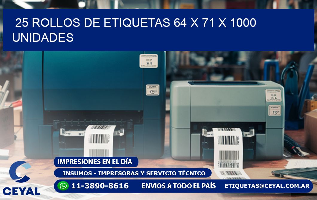 25 ROLLOS DE ETIQUETAS 64 x 71 X 1000 UNIDADES