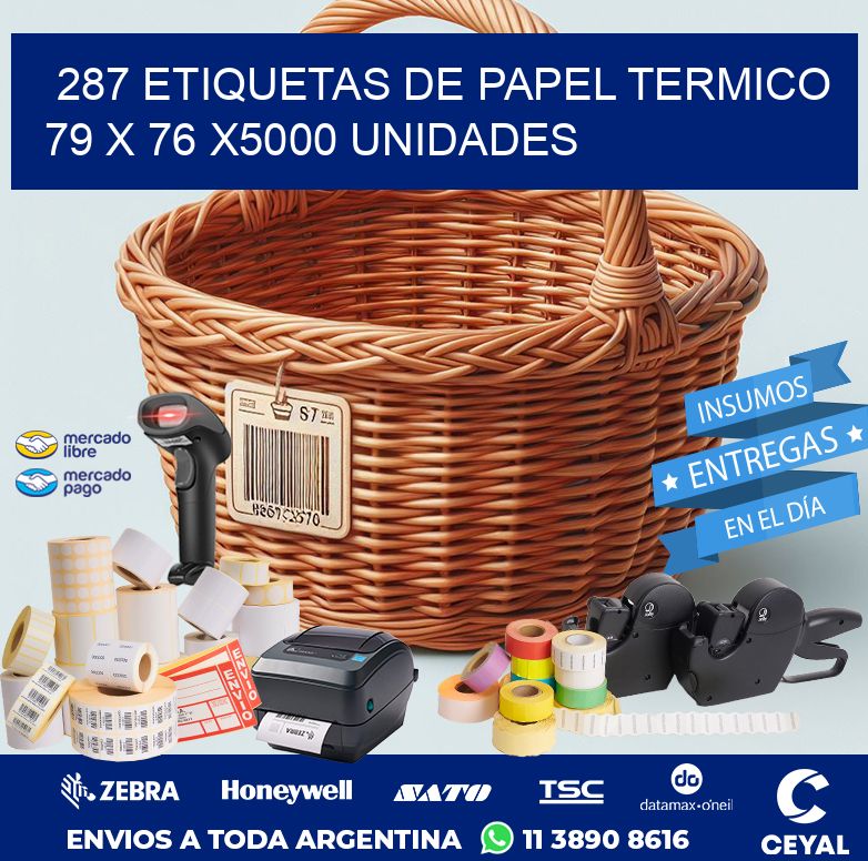 287 ETIQUETAS DE PAPEL TERMICO 79 x 76 X5000 UNIDADES