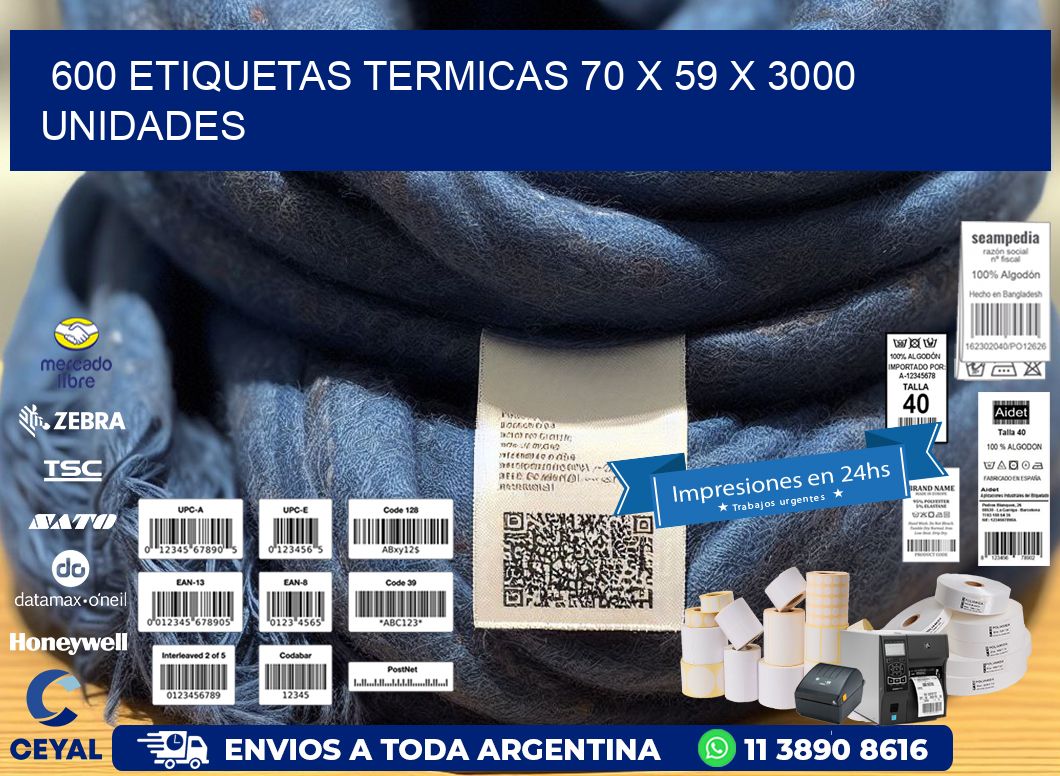 600 ETIQUETAS TERMICAS 70 x 59 X 3000 UNIDADES