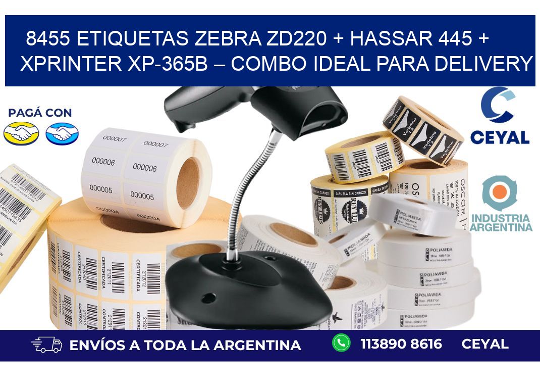 8455 ETIQUETAS Zebra ZD220 + Hassar 445 + Xprinter XP-365B – Combo ideal para delivery