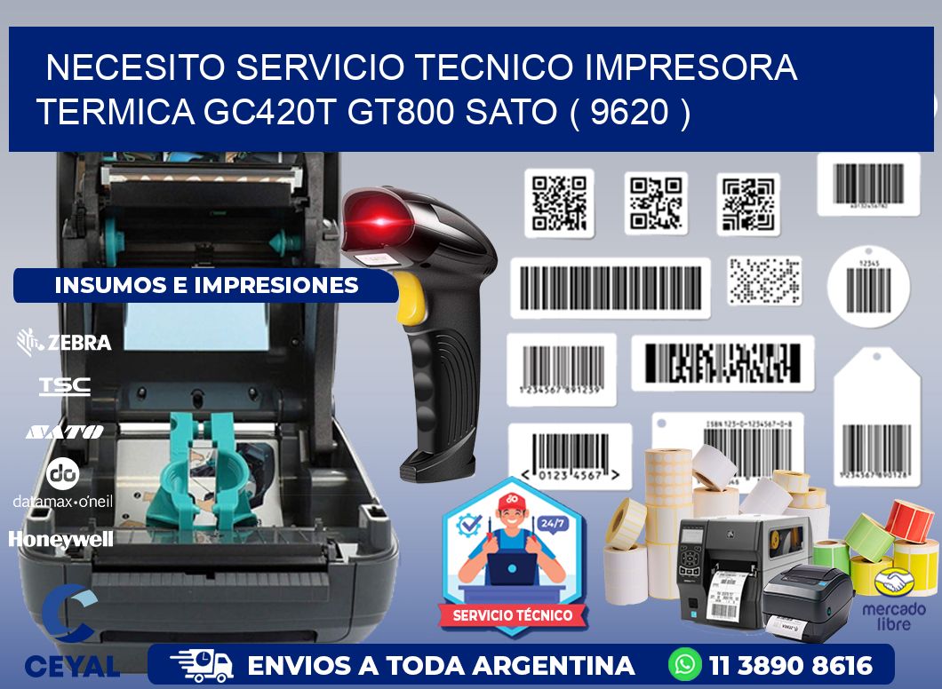 NECESITO SERVICIO TECNICO IMPRESORA TERMICA GC420T GT800 SATO ( 9620 )